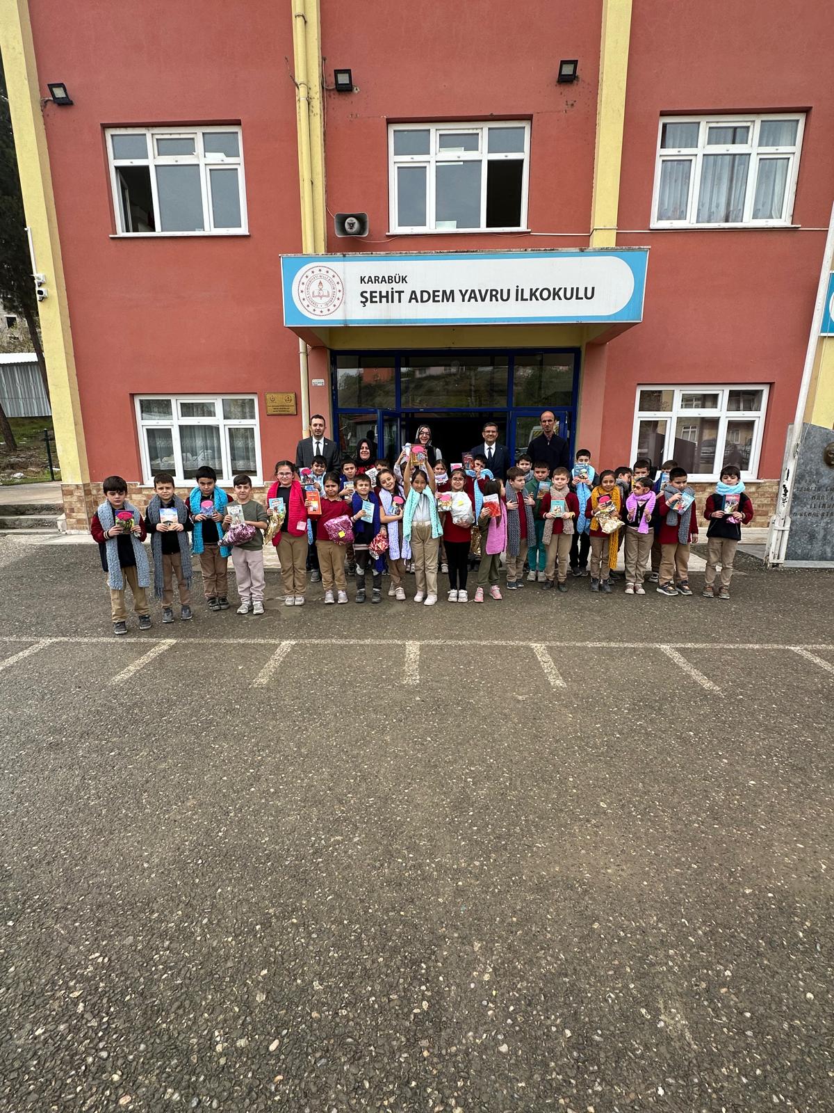 Eskipazar meslek yüksek okulu mülkiyet koruma programından iş sağlığı ve güvenliği öğrencilerimiz ile Topluma hizmet uygulamaları dersi kapsamında öğrencilerimizi n yapmış olduğu atkıları bölüm adına dersin hocası Öğr. Gör. Rukiye TEKİN ÜNVER bugün Karabük ilindeki Şehit Adem Yavru ilkokulun da öğrencilerimiz adına dağıttı.Okul müdürü Seyfullah Karaca hocamız hem emeği geçen öğrencilere hemde vesile olan hocamıza teşekkürlerini iletti. Dağıtım esnasında okul müdür yardımcısı Ahmet Murat CANBAZ, okul öğretmenlerinden 3/A sınıfı adına Halime Doğan 3/B sınıfı adına Dursun Yarbaşı yardımcı oldular. Çocukların sevinçleri görülmeye değerdi.